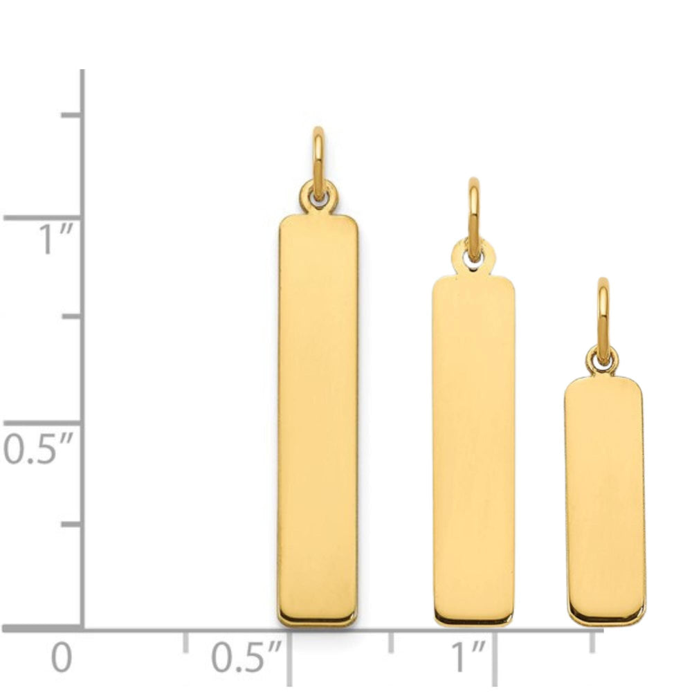 Personalized Vertical Bar Pendant in Gold or Silver, Custom Engraved Name Charm, Polished Front & Satin Back, Gift for Men or Women