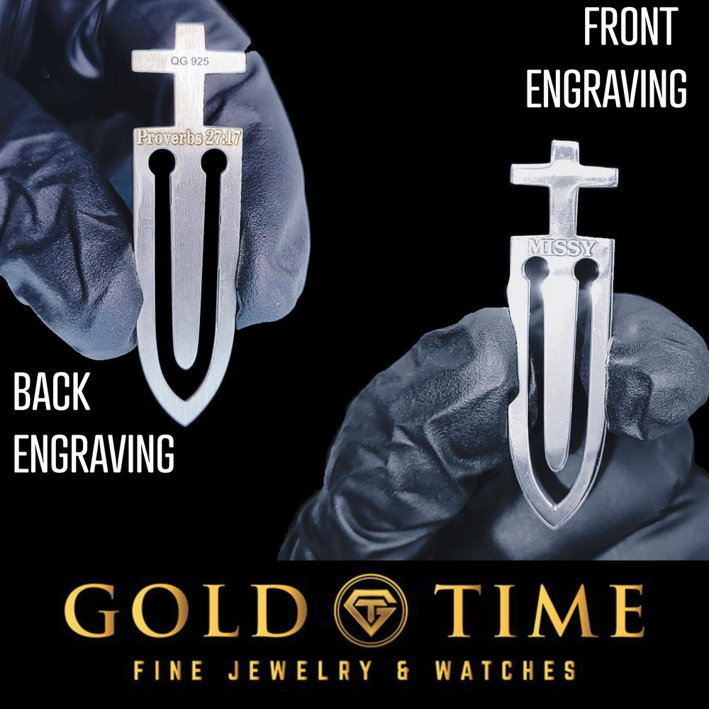Honor your faith and mark your place in style with this made-to-order Sterling Silver Cross Bookmark, a powerful symbol of devotion and memory. Crafted in luminous .925 sterling silver, this bookmark features a sleek cross design and can be personalized with up to 5 letters or numbers across the arms, creating a meaningful keepsake for any reader.